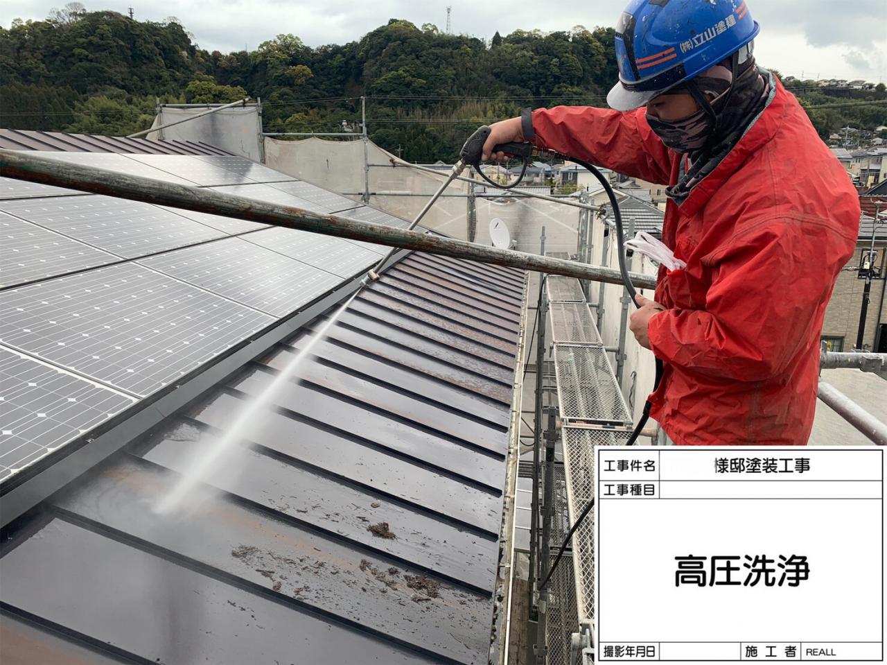 本日の施工写真は洗浄中の写真です🌟築8年のご邸宅ですが、屋根も壁も土間も結構汚れがありますね💦💦