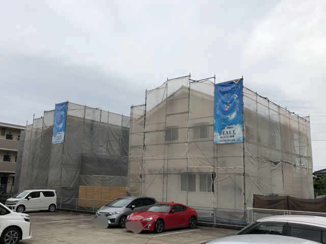 そんな中、今2件並びで工事をさせていただいております✨現場が1件あるだけでも嬉しいのですが、このように当社の垂れ幕が2件連なっているのを見ると、本当に嬉しいです!!!